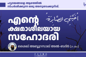 ശൈഖ് അബ്ദുറസാഖ് അൽ-ബദ്ർ (حفظه الله) യുടെ 'أُخَيَّتِي الصَّابِرَةُ' എന്ന ചെറുപുസ്തകത്തിൻ്റെ മലയാള പരിഭാഷ.