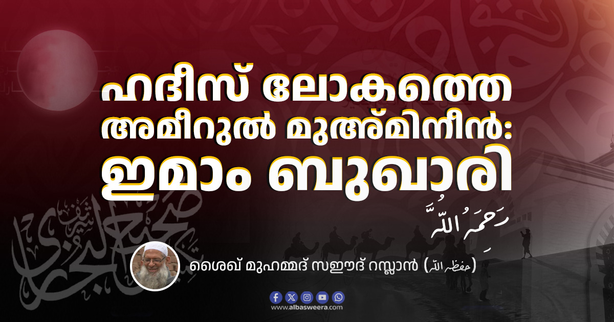 മുസ്ലിം ഉമ്മത്തിന് അല്ലാഹു നൽകിയ അനുഗ്രഹങ്ങളിൽ ഏറ്റവും മഹത്തായ ഒന്നാണ് പ്രവാചകചര്യയെ (സുന്നത്തിനെ) സംരക്ഷിക്കാൻ നിയോഗിക്കപ്പെട്ട പണ്ഡിതന്മാർ. അവരിൽ അഗ്രഗണ്യനും, ഹദീസ് പണ്ഡിതന്മാരുടെ നേതാവുമായ അമീറുൽ മുഅ്മിനീൻ ഫിൽ-ഹദീസ്, ഇമാം ബുഖാരിയുടെ (رَحِمَهُ اللَّهُ) ജീവിതം ഓരോ വിശ്വാസിക്കും പാഠപുസ്തകമാണ്. അബൂ അബ്ദില്ലാഹ് മുഹമ്മദ് ബ്നു ഇസ്മാഈൽ ബ്നു ഇബ്രാഹിം ബ്നുൽ മുഗീറ ബ്നു ബർദിസ്ബ (أبو عبد الله محمد بن إسماعيل بن إبراهيم بن المغيرة بن بردزبه) എന്നാണ് അദ്ദേഹത്തിന്റെ പൂർണ്ണനാമം. ‘ബർദിസ്ബ’ എന്നത് ബുഖാറയിലെ ഒരു പദമാണ്, കർഷകൻ എന്നാണതിനർത്ഥം. ഇമാം നവവി (رَحِمَهُ اللَّهُ) ഉദ്ധരിക്കുന്നത് പ്രകാരം, അദ്ദേഹത്തിന്റെ മുൻഗാമിയായ ബർദിസ്ബ ഒരു മജൂസിയായി (അഗ്നിയാരാധകൻ) ക്കൊണ്ടാണ് മരണപ്പെട്ടത്. എന്നാൽ അദ്ദേഹത്തിന്റെ മകൻ മുഗീറ, യമാൻ അൽ-ജുഅ്ഫി എന്ന ബുഖാറയിലെ ഗവർണറുടെ കൈകളിലൂടെ ഇസ്ലാം സ്വീകരിച്ചു. അതുകൊണ്ടാണ് ഇമാം ബുഖാരിയെ ‘ജുഅ്ഫി’ എന്ന് വിശേഷിപ്പിക്കുന്നത്. ഇത് രക്തബന്ധം കൊണ്ടുള്ളതല്ല, മറിച്ച് ഇസ്ലാം സ്വീകരിച്ചതിലൂടെയുള്ള ബന്ധമാണ്. ഇസ്ലാം മുസ്ലിംകൾക്കിടയിലുള്ള സാഹോദര്യത്തെ ഊട്ടിയുറപ്പിക്കുന്നതിന്റെ ഭാഗമായാണ് ഇത്തരം ബന്ധങ്ങളെ നിശ്ചയിച്ചിട്ടുള്ളത്.